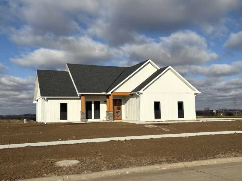2907 N 4th Street, Red Oak The Red Oak Chamber and Industry Association has provided the community with this great opportunity for a new built ranch home featuring 1,425 square feet, 3 bedrooms, 2 bathroom and a 2 car garage. The home has all amenities on the main level including laundry with concrete storm shelter, an on demand water heater so you never run out of hot water. Just off of the garage is drop zone with closet, master bedroom with walk-in master closet and a large master bathroom with double sinks and quarts counter tops. The home through out has wide 32 inch doorways, a very open concept area for the great room, dining room and the kitchen. The home has vaulted ceilings that let in lots of sunlight, dining area has sliding glass doors to the cover rear porch, beautiful back view as the home sits on 0.34 acres overlooking the countryside. The kitchen has large island with quartz countertops , kitchen sink window to let you also enjoy the countryside view. This newly constructed home is waiting for you!! Set you appointment to see today!!